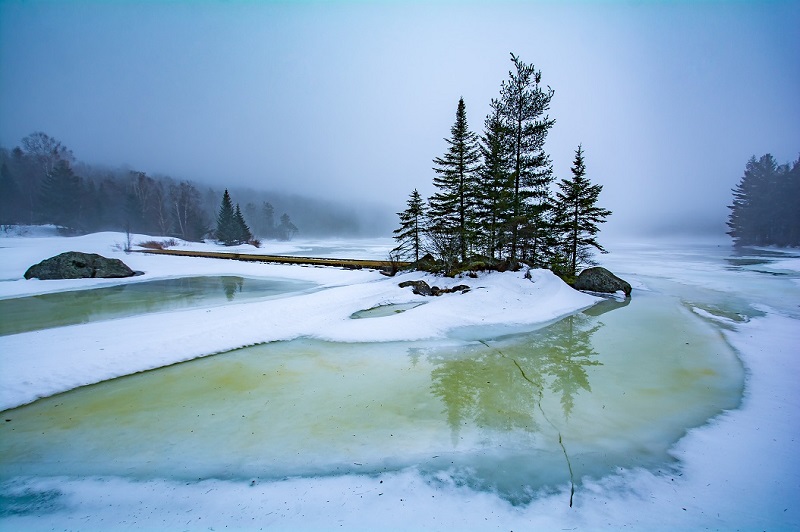 Pine Trees with Blue Ice Melt in Groton, VT, USA